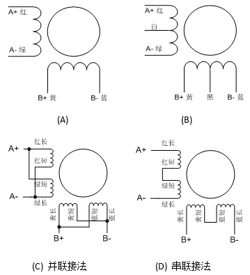 對于二相四線電機(jī):可直接與驅(qū)動器相連(如圖二A)。